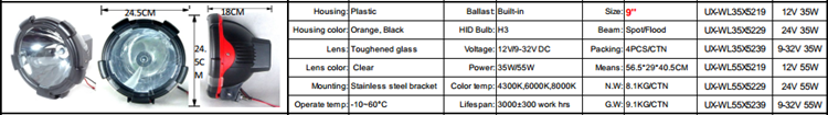 9 인치 HID 제 논 작업 빛 35W 55W 라운드 모양 자동차 작업 빛